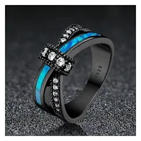 Montura: Argint 925 placat cu aur negru incrustat cu cristale zirconia si piatra Opal